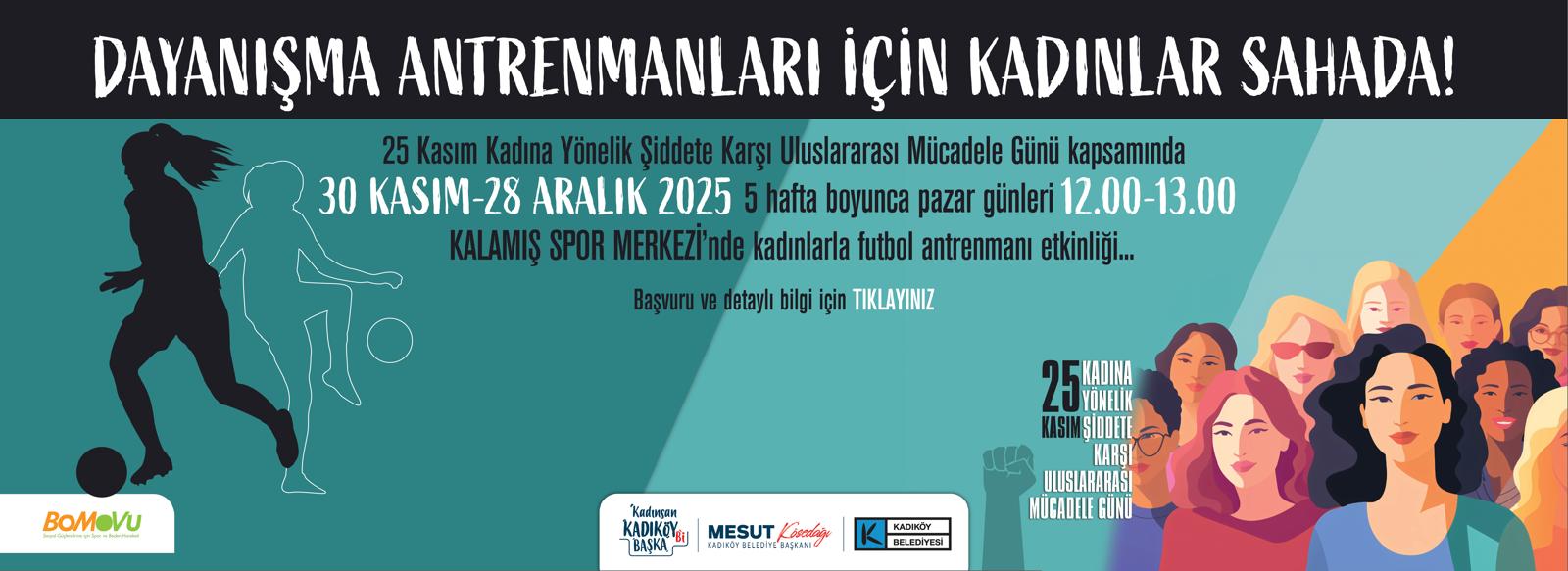 Sosyal Destek Hizmetleri Müdürlüğü, Spor Müdürlüğü ve BoMoVu Beden ve Hareket Derneği ile birlikte kadınların futbol ile tanışmalarını sağlamak amacıyla 6 haftalık Dayanışma antrenmanları gerçekleştirilecektir.